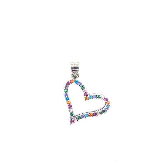 Slanted Sterling Silver Colourful Pavé Heart Necklace Set