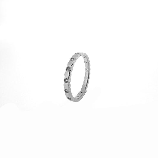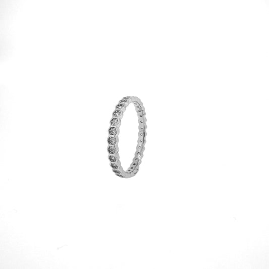 Spaced-Hexagonal Pavé Sterling Silver Ring