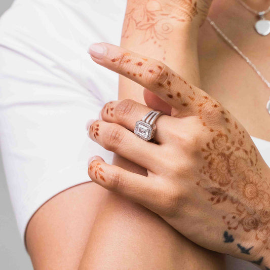 Sterling Silver rectangular Band Cubic Zirconia Ring