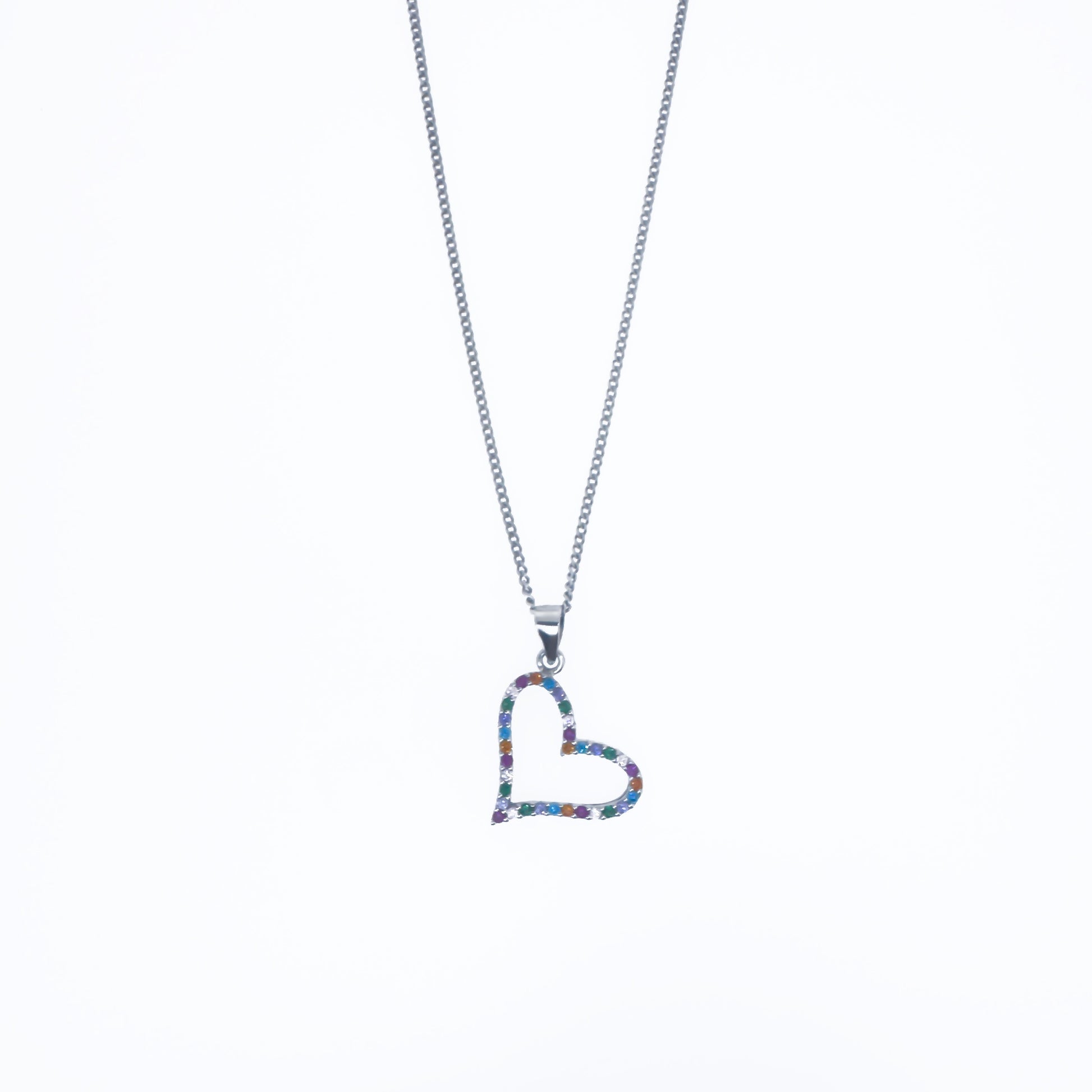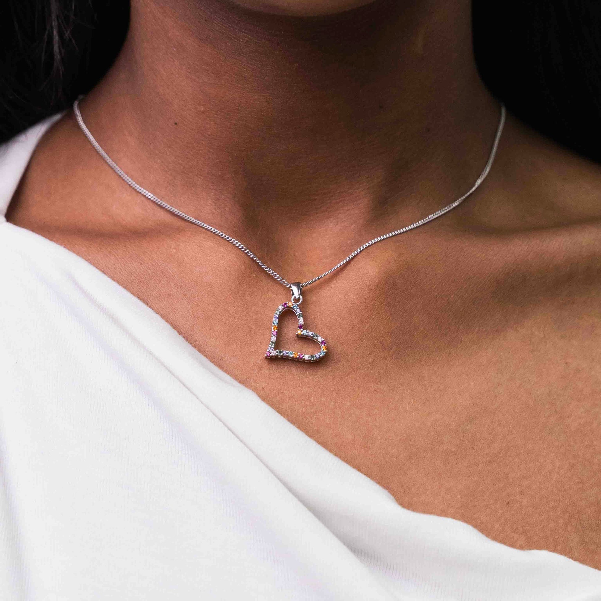 Slanted 925, Sterling Silver Colourful Pavé Heart Women's Pendant with Standard 45cm Chain