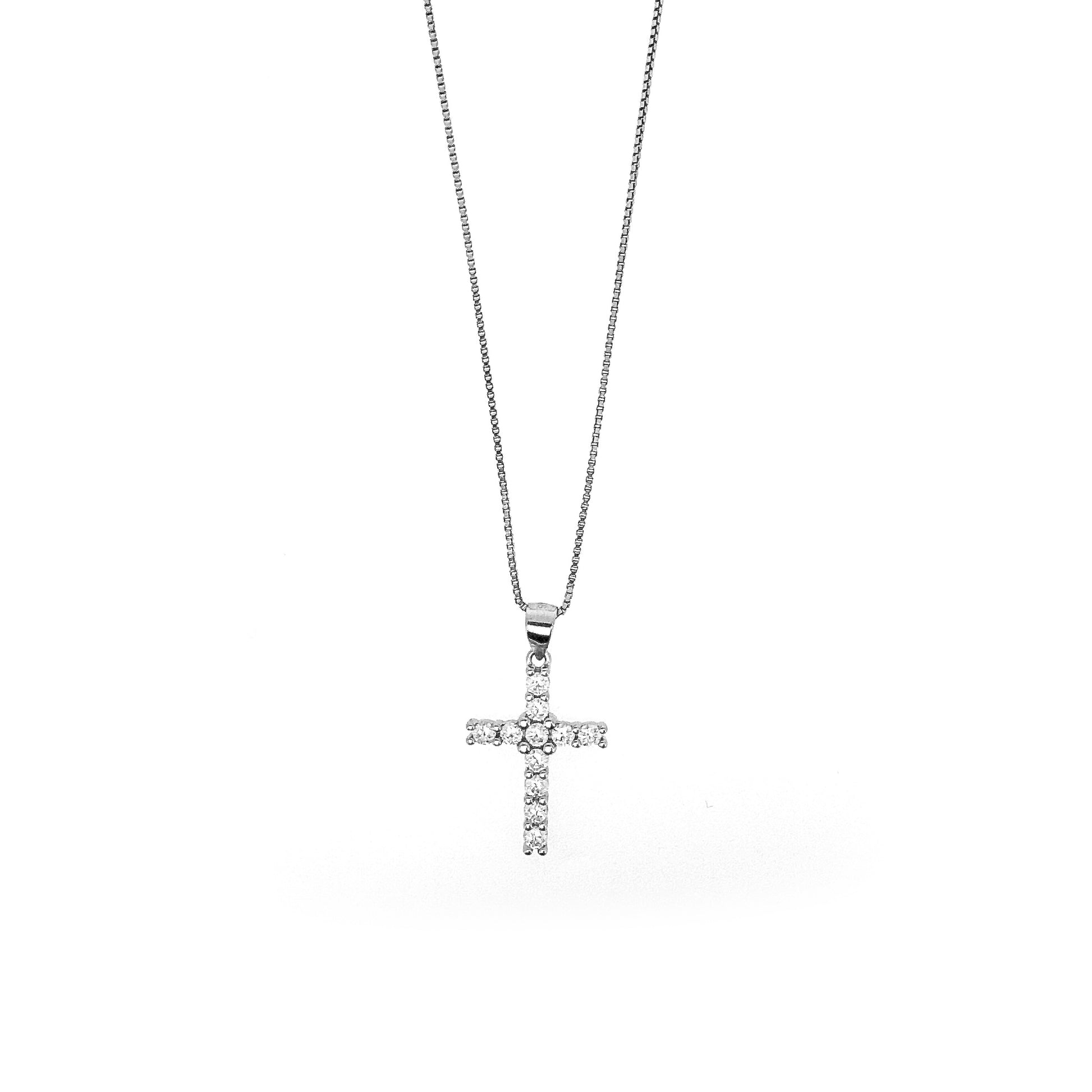 925, Mini Silver Cubic Zirconia Cross Women's Pendant with Standard 45cm Chain