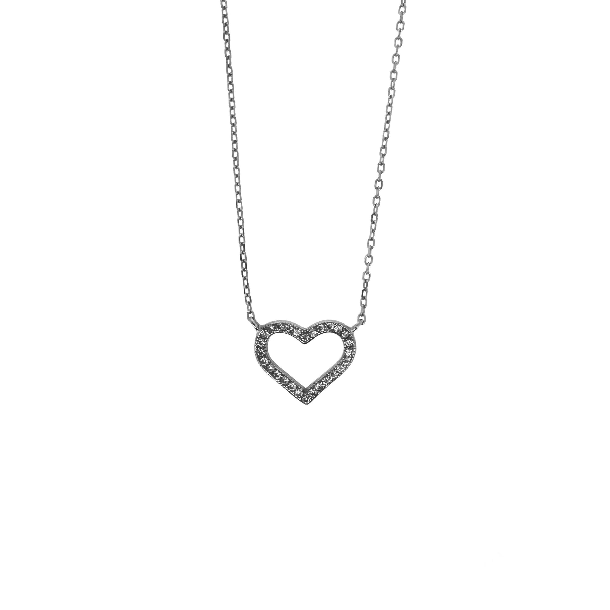 925, Pavé Heart Outline Women's Pendant with Adjustable Chain