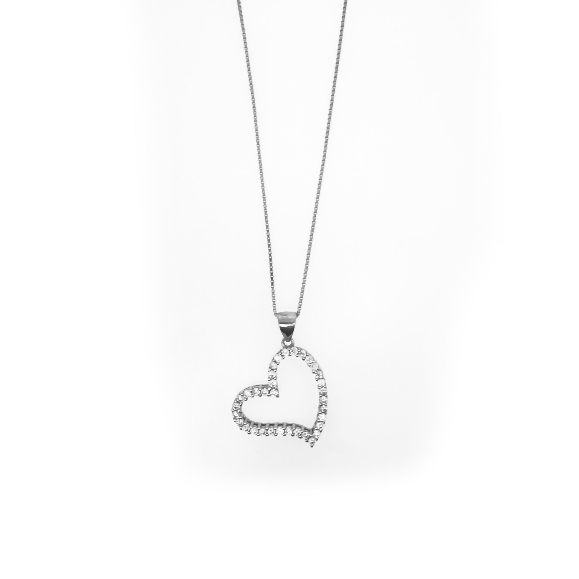Slanted Sterling Pavé Silver Outlined Heart Necklace Set