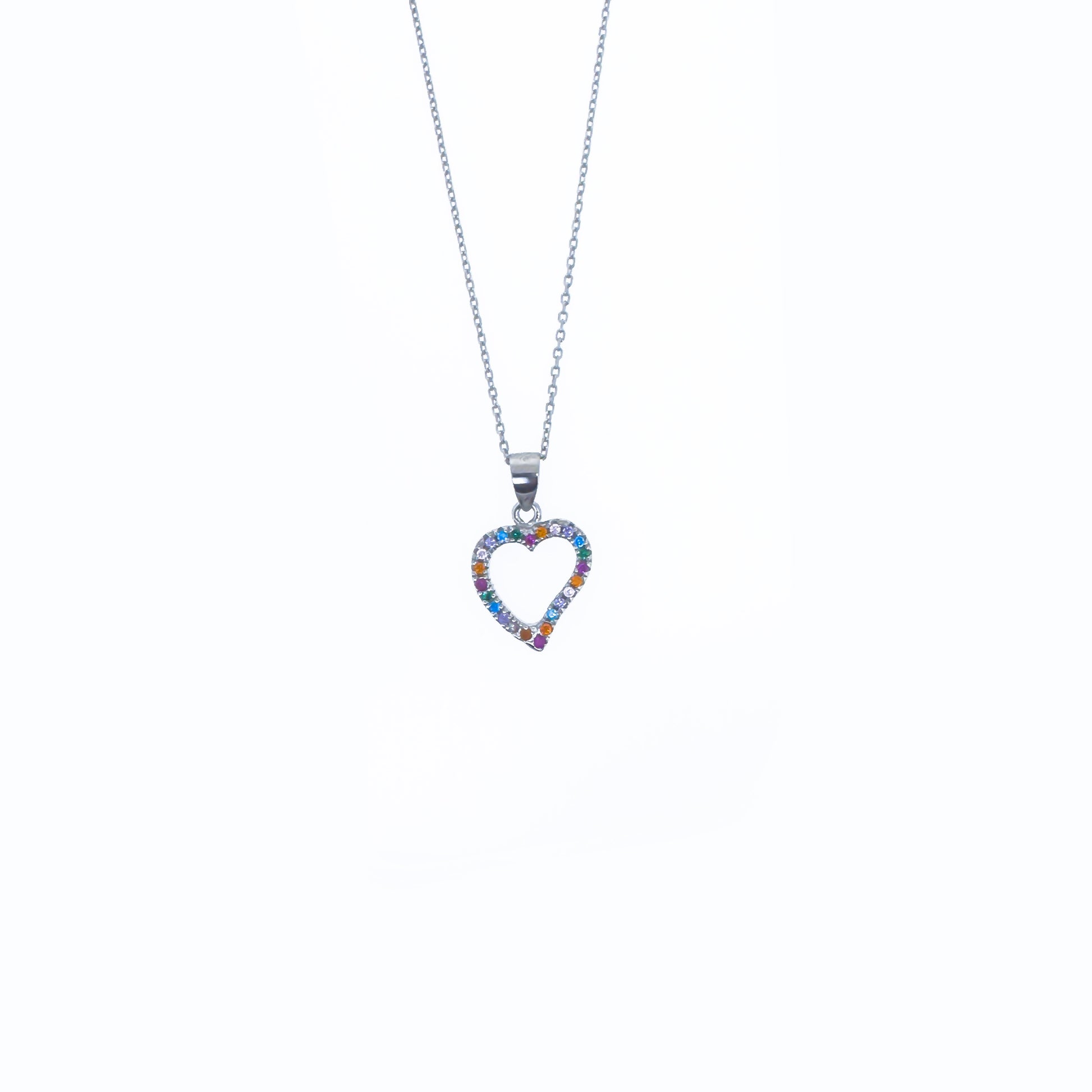 925, Sterling Silver Colourful Pavé Heart Women's Pendant with Standard 45cm Chain