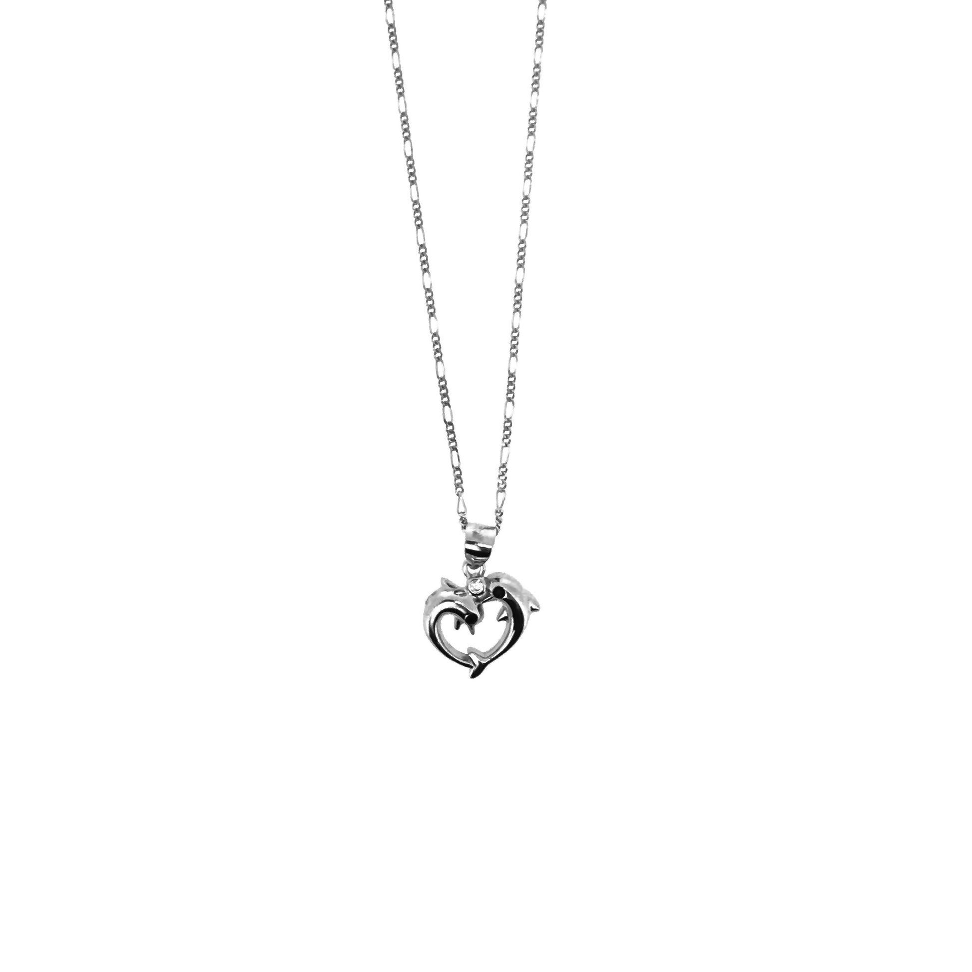 925, Sterling Silver Dolphin Heart Women's Pendant with Standard 45cm Chain