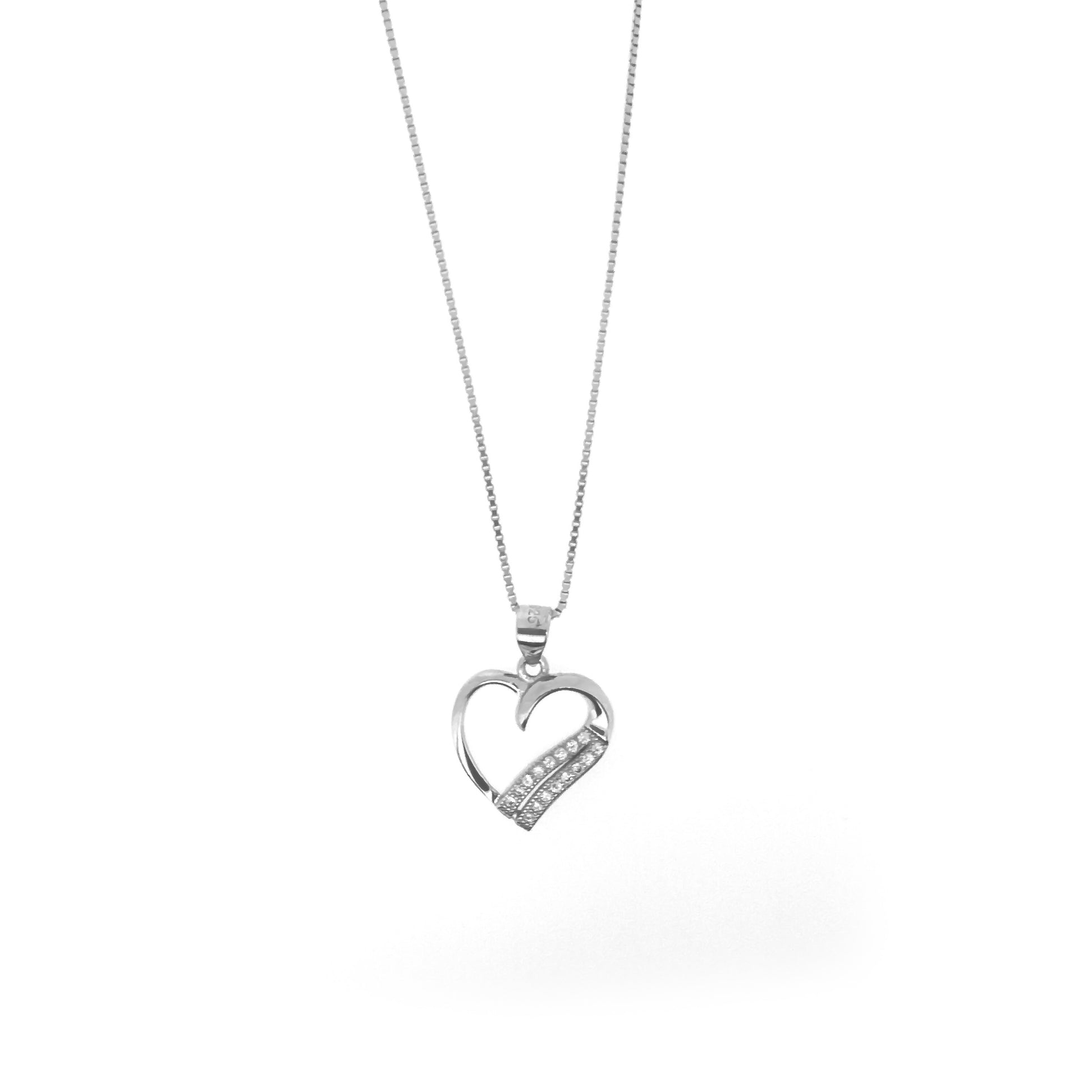 925, Sterling Silver Semi Pavé Outlined Heart Pendant with Standard 45cm Chain